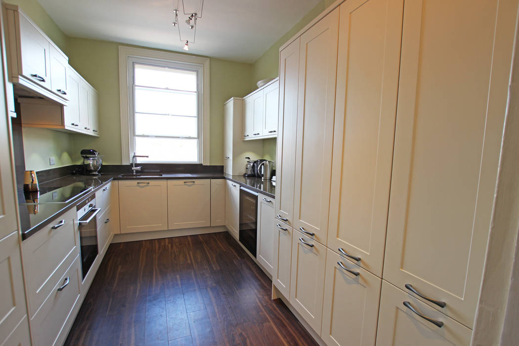 Beech Worktops On Cream Painted Units And Wall Cupboard In