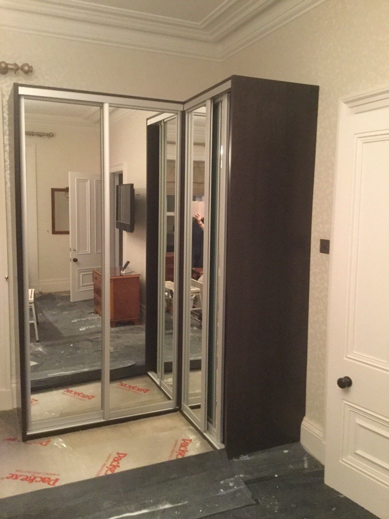 Corner Fitted Dark Wood Effect Wardrobe With Silver Framed Mirrored Sliding Doors In Aberdeen Gumtree